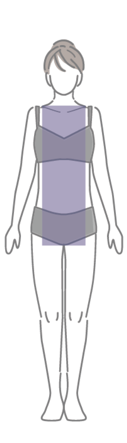 肩と腰の幅が同じくらいの広さで全体的に凹凸が少ない体型シルエット。ウエストのくびれがなく、全体的に直線的なラインが特徴。